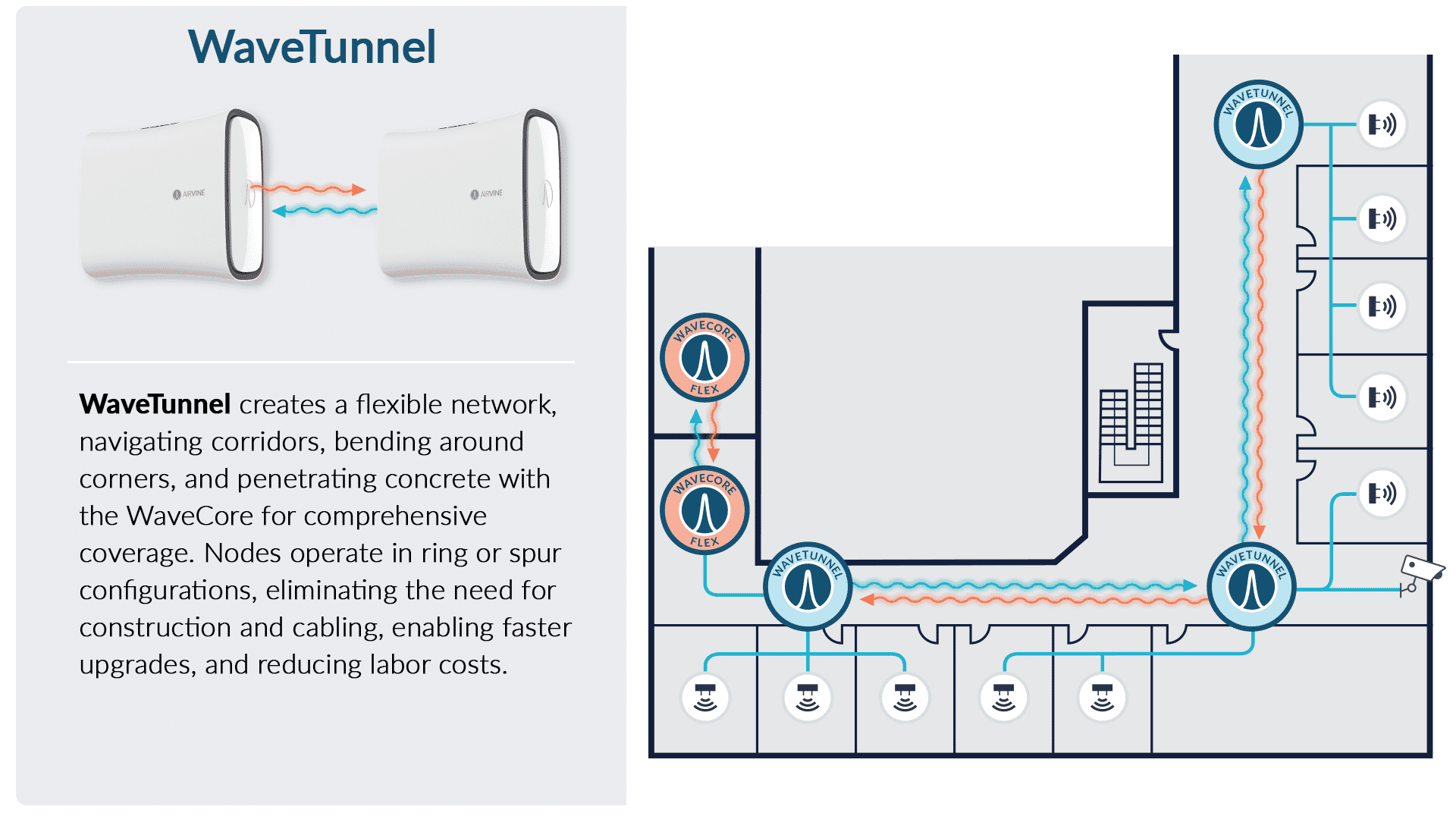 WaveTunnel creates a flexible network, navigating corridors and bending around corners.